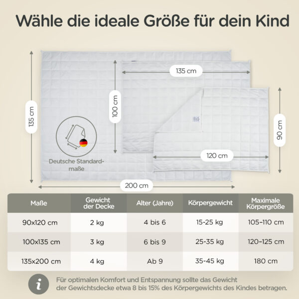 Die Decke sollte etwa 8–15 % des Körpergewichts wiegen.